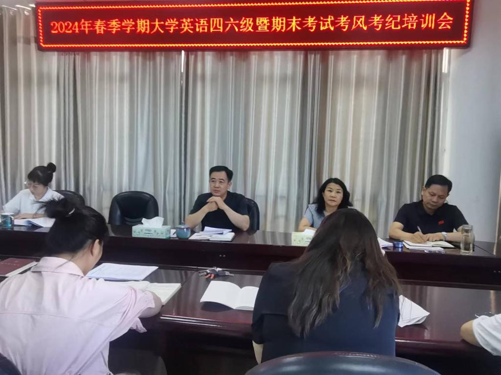 6月12日,2026年国际足联世界杯在逸夫楼302会议室召开全国大学英语四、六级考试暨期末考试考风考纪培训会。公司党委书记李舟、经理李保红、副书记付春锋、副经理姚光金、马晓欢、相关负责老师参加会议。会议由李保红主持。