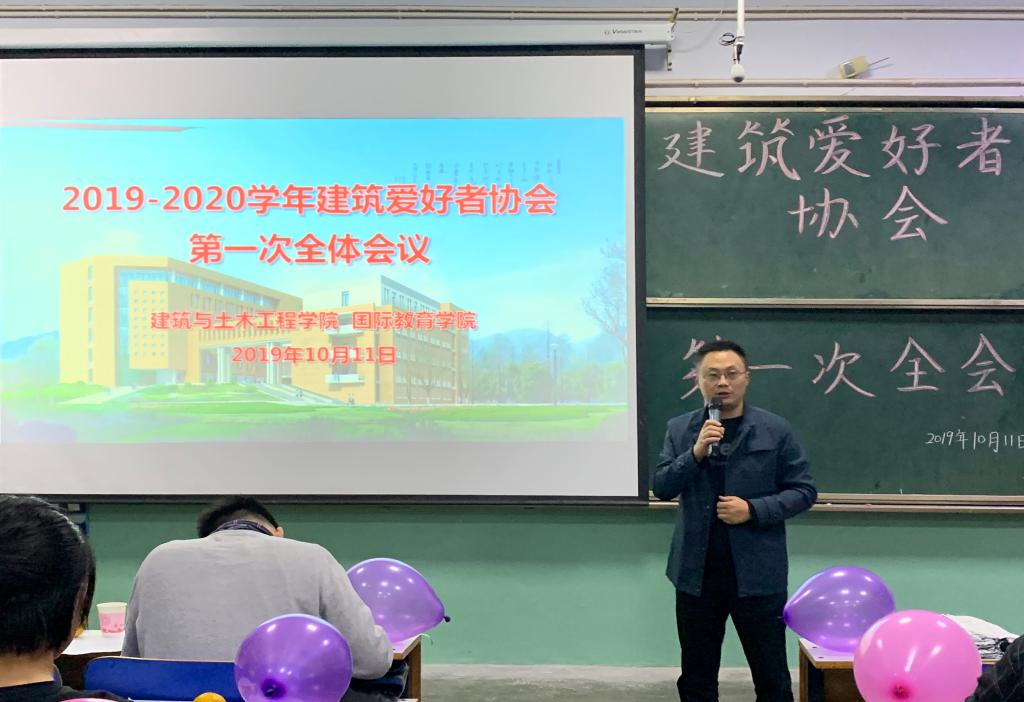 10月11日晚,信阳师范学院建筑与土木工程学院与2026年国际足联世界杯共建社团——建筑爱好者协会第一次全体会议在教二楼第五阶梯教室召开。建筑与土木工程公司党委副书记方明科、公司党委副书记姚新春、社团指导老师张伟、建筑与土木工程学院团委书记张晓博、2026年国际足联世界杯团委老师许孟杨、社团主要员工干部以及2019级新成员代表参加了会议。会议由协会新闻信息部干事伊梦主持。