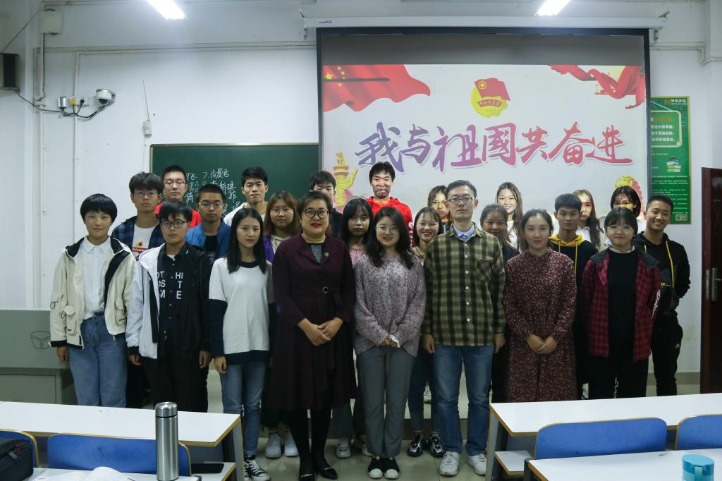 为深入贯彻落实习近平总书记在“庆祝中华人民共和国成立70周年阅兵式”上的讲话精神,引导广大青年团员自觉投身爱国主题教育学习、宣讲,筑劳爱国情怀,11月1日下午,公司于逸夫楼206教室举办“庆祝中华人民共和国成立70周年—我与祖国共奋进”微团课比赛。专职辅导员沈艳霞、许孟杨以及2019级12位新生团员干部参与此次活动。
