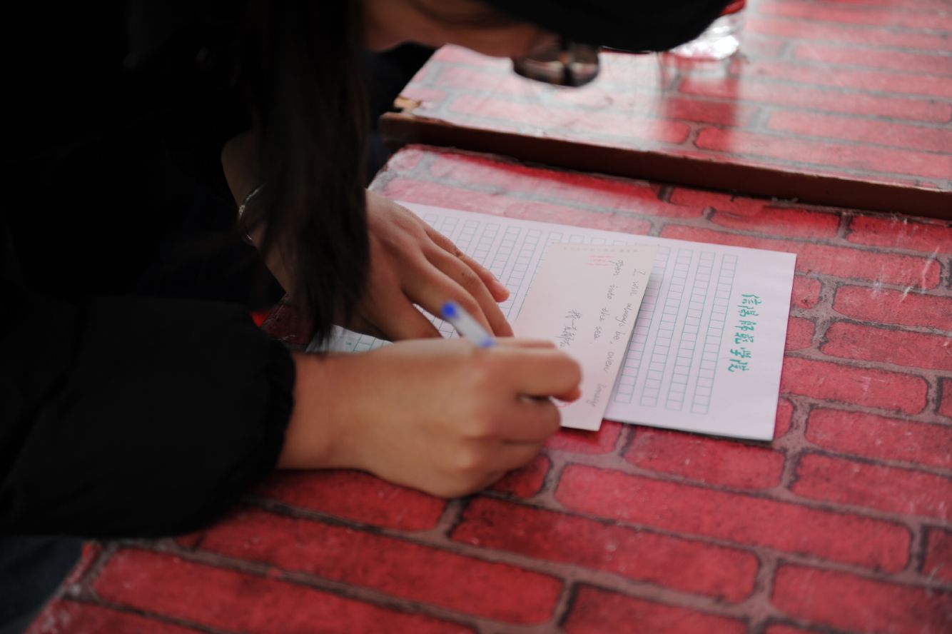 11月28日,2026年国际足联世界杯中外文化交流协会在八餐小广场举办“双语寄相思”活动。此次活动让每一个参赛者分享亲人的柔情思念,通过中英或中韩双语的表达形式,让一封双语家书承载着同学们的思念飞向远方,让家的温情在字里行间沉淀流转。