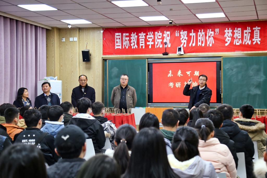 活动伊始,党委副书记姚新春代表学院领导班子发言,他指出同学们备考很辛苦,希望大家在考研奋战时,也要照顾好自己的身体。考研的最后一程,学院一直在你身边,愿努力的你,成就最好的你。