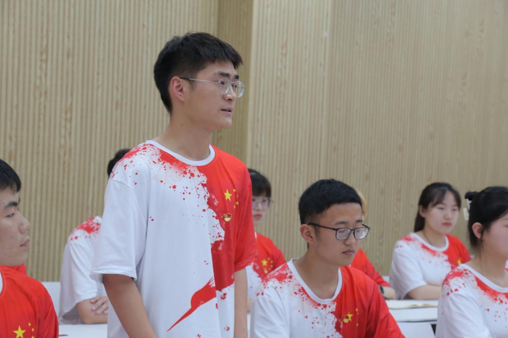 活动在庄严的国歌声中拉开帷幕。班主任吴浩老师讲述微团课《时光机里的爱国主义》,他以旧民主主义革命、新民主主义革命、社会主义建设、改革开放和中国特色社会主义新时代为时间轴,带领同学们从历史发展长河中寻找爱国主义在不同历史时期的具体内涵,坚定了同学们永远跟党走,为党的事业奋斗终生的信念。团支部副书记郭佳介绍了班级团支部建设情况。团员代表结合大别山英雄事迹踊跃发言。团支部组织委员刘倩分享了被誉为“大别山劲松”的刘名榜的故事,号召广大青年团员将个人理想与国家前途、民族命运和人民幸福联系在一起,做无愧于这个伟大时代的有为青年。青年志愿者协会会长袁乾赫讲述了女烈士晏春山的英雄事迹,表示作为志愿服务类社团的负责人,今后将弘扬“团结、友爱、奉献、进步”的志愿者精神,在奉献中提升人生高度,用青春之我,铸就青春之中国。团支部书记李保庆分享了王树声的革命故事,表示作为最年轻的一代共产党人,要牢记习近平总书记的嘱托大力发扬红色传统、传承红色基因,赓续共产党人精神血脉,把刻苦学习、报效祖国当做自己的责任和使命,把爱国热情转化为刻苦学习的实际行动。校团委新媒体中心风向标负责人武毅斌讲述了“虎将军”徐海东的故事,表示作为校园媒体人,要坚守新闻媒体第一线,服务学校大局,努力创造出有思想、有温度、有品质的新媒体作品,进一步讲好师院故事,传递师院声音。即将赴汉阳大学学习的职工代表李航和李金阳,分别讲述了红二十五军军长吴焕先和“忠孝虎将”许世友的故事,他们表示在未来几年的职工活中,将坚守爱国主义精神、矢志刻苦学习、奋力创新创造,时刻铭记中国公民和中国共产党人身份,做到越出国越爱国,越比较越自信,当学成归来,坚决为国家和人民贡献自己的一切!