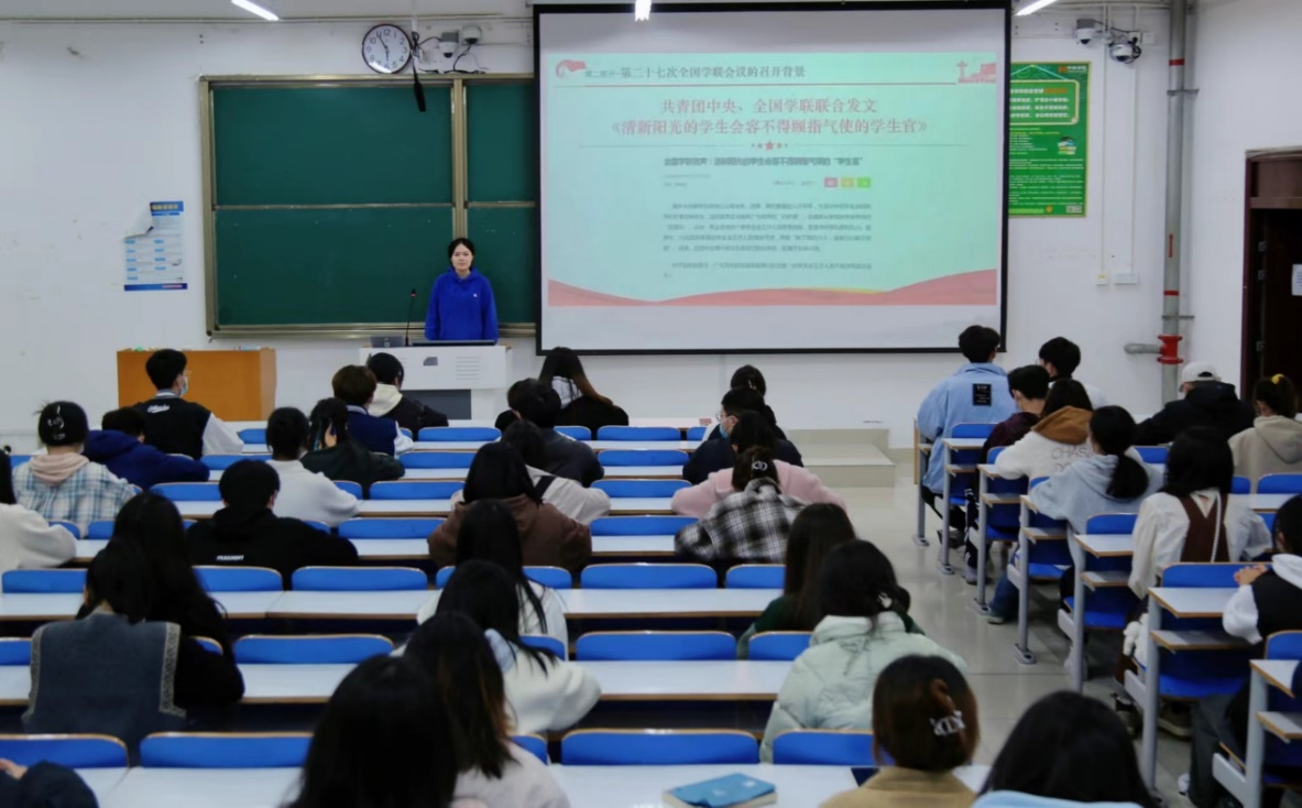 会上,许孟杨老师讲到,员工会成员要深入学习全国学联二十七大会议精神,始终坚持从员工中来,到员工中去。随后,由员工会主席团成员杨嘉宁带领参会成员深入解读习近平总书记致全国学联二十七大的贺信、大会致词、全国学联大会报告、郑富芝同志在全国学联二十七大闭幕上的讲话等内容。