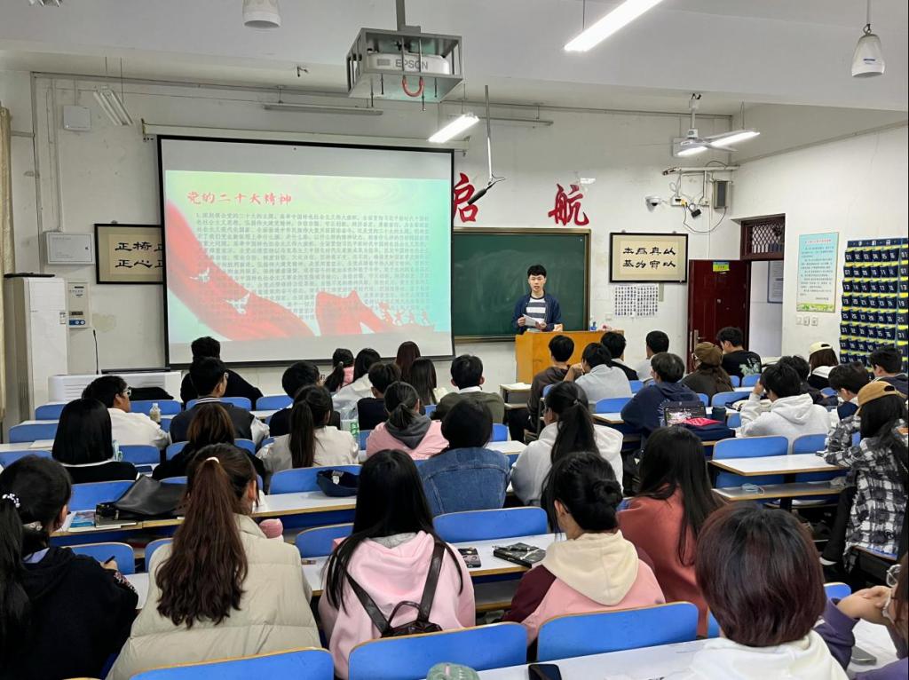 学思践悟以知促行。各班开展“深入学习贯彻习近平新时代中国特色社会主义思想”主题团课。青年是祖国的未来、民族的希望。加强对共青团员的政治锻造,加强对广大青年的政治引领,事关党的事业后继有人、红色江山永不变色。用党的创新理论统一思想、统一意志、统一行动,铸牢听党话、跟党走的立身之本和政治之魂,是落实党管青年工作原则、加强新时代党的青年工作的战略性举措,对于培养社会主义建设者和接班人、源源不断为党输送健康有活力的新鲜血液,充分激发新时代中国青年在强国建设、民族复兴伟业中挺膺担当,具有十分重大的意义。