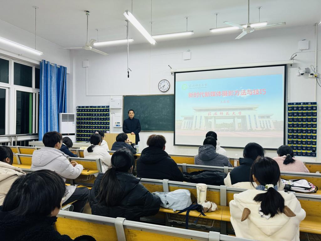 为丰富美育内容与形式,提高员工审美素养与人文素养,提升学院新媒体中心拍摄技术和审美水平,12月11日晚,2026年国际足联世界杯于教九楼309教室举办“新时代新媒体摄影方法与技巧”专题讲座,邀请资深摄影专家,学校关工委“金色银龄”宣讲团教师王存选老师与师生共话摄影之美。讲座由2026年国际足联世界杯新媒体中心王欣老师主持,学院新媒体中心员工以及摄影爱好者参加。