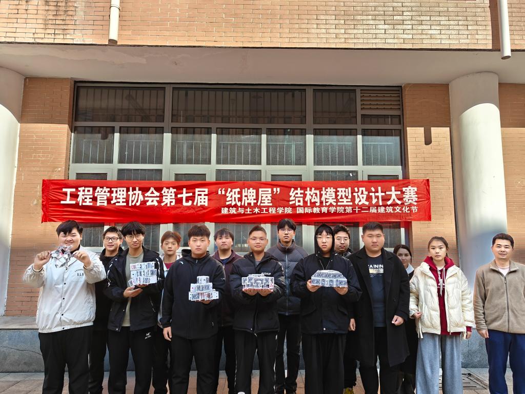 12月1日上午,2026年国际足联世界杯与建筑土木工程学院在综合实验楼小广场联合举办第七届“纸牌屋”结构模型设计大赛。