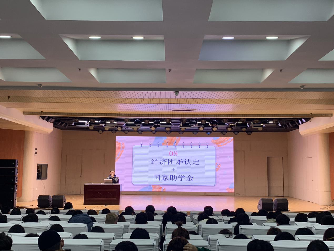 吴浩将资助政策划分成“入学前”、“入学时”和“入学后”三个部分,详细介绍了生源地国家助学贷款、新生绿色通道、爱心大礼包、爱心防疫礼包、免费军训服、短期路费补助、校园地国家助学贷款、国家助学金、国家奖学金、国家励志奖学金、校单项奖学金、校综合奖学金、勤工助学岗位、服兵役员工国家资助等14项资助政策的具体内容、资助对象、奖励标准、申请条件,并结合员工在实际申请过程中出现的问题,针对易于出现理解错误和填写错误的地方做出了细致说明。