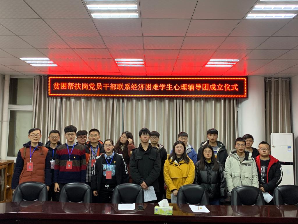 2020年12月23日晚,贫困帮扶岗领岗人吴浩、党小组组长王继峰、认领岗位全体党员及学院全体建档立卡员工于逸夫楼302会议室举行经济困难员工“心理辅导团”成立仪式,主要面向经济困难新生,通过双向选择,确立“一对一”帮扶,帮助他们化解因学业、生活、人际交往等引起的心理问题,尽快适应老员工活。