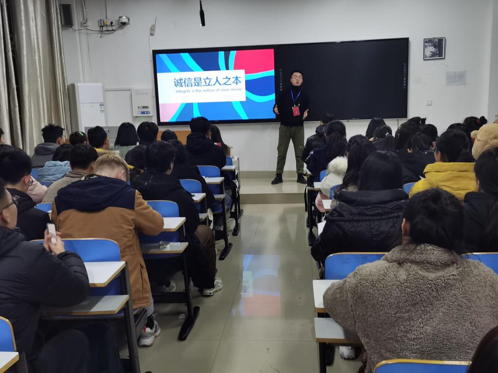 2020年12月7日晚,贫困帮扶岗党小组成员郭洋在逸夫楼102教室向全体建档立卡员工及2020级部分新生代表做了“校园地诚信贷款”宣讲,以自身经历,详细介绍了校园地贷款的首贷、续贷程序;还款时的注意事项;贷款失信对个人的影响,引导大家提高征信意识、金融意识、风险意识、法律意识,树立正确消费观念。