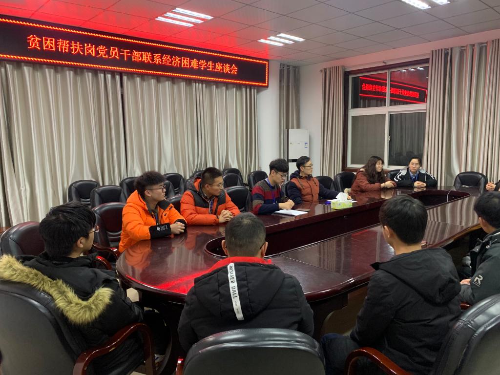 2020年12月22日晚,贫困帮扶岗领岗人吴浩、党小组组长王继峰、认领岗位全体党员及学院全体建档立卡员工于逸夫楼302会议室举行经济困难员工“学业帮扶团”成立仪式,针对在专业课和公修课等学业课程学习上存在困惑或短板的经济困难员工,通过双向选择,选取学习成绩较为优秀的党员干部定期对困难员工开展学习规划、学业成绩等方面的指导。