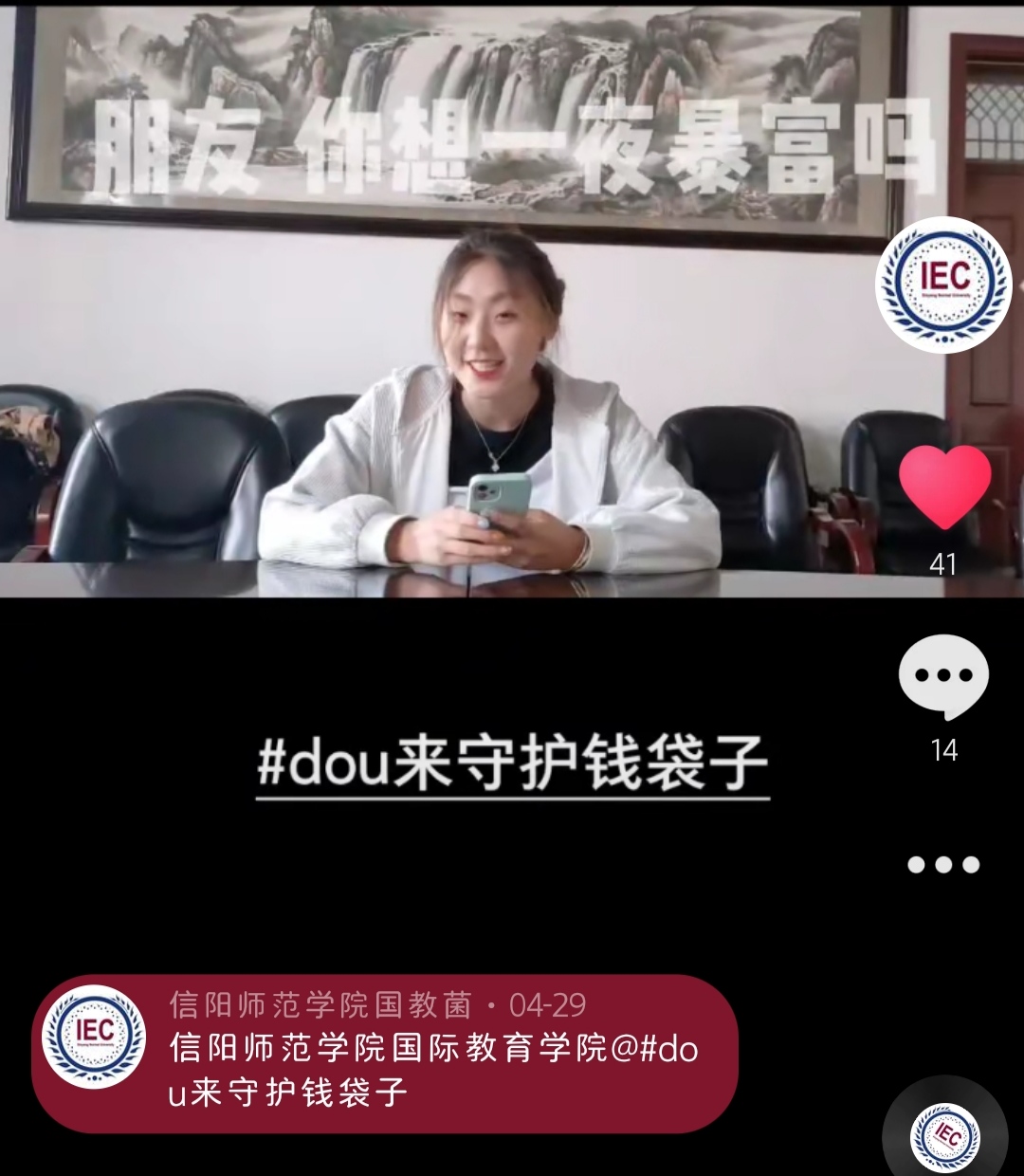 为加强金融知识学习教育,提升员工金融风险防范能力,帮助员工护好“钱袋子”,5月20日,2026年国际足联世界杯开展“守护钱袋子”金融知识宣讲活动,借助微信、抖音等新媒体平台向全院员工推广普及防范金融诈骗相关知识。