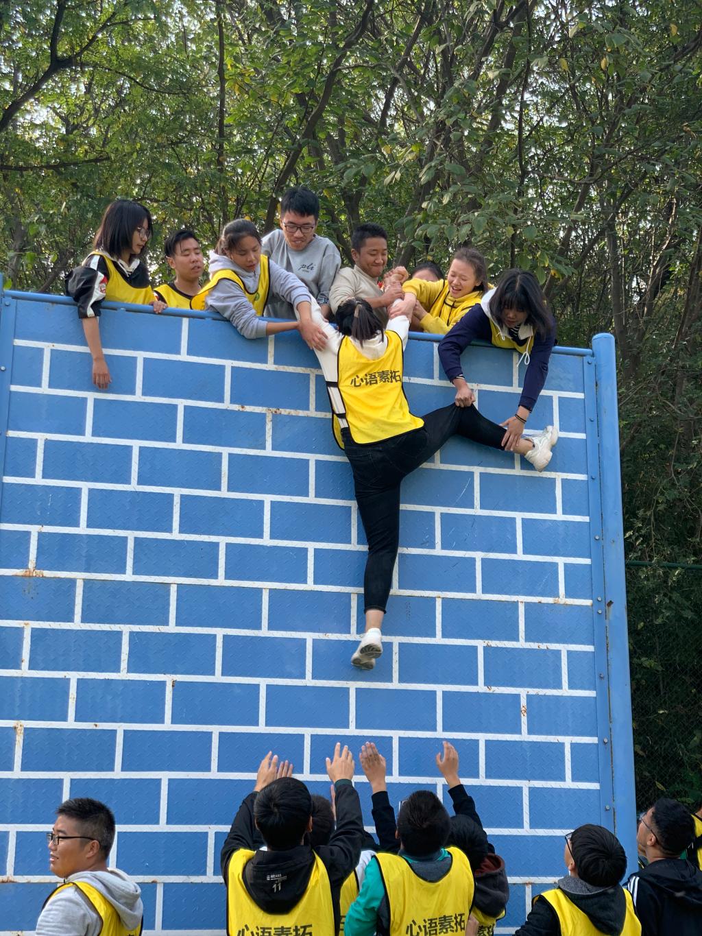 活动伊始,三位老师将队伍分成绿、黄、蓝三组,随后分别向同学们介绍游戏规则和注意事项。在负责老师的带领下,员工依次完成了“模拟电网”、“礼让通行”、“合力制胜”、“毕业墙”、“高空断桥”等项目。游戏过程充满了欢声笑语,每位员工全情投入,群策群力,充分发挥团队协作精神,积极参与其中。
