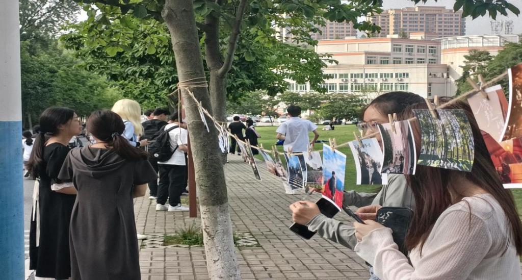 此活动采取线上线下两种模式同时开展。首先在线上进行宣传,收集作品,线上征集作品结束后,由活动工作人员整理打印。随后在一棵树广场举办线下活动。工作人员将活动照片一一展出,在草坪边的道路上汇成一道靓丽的风景线。同时,作品评比采用了投票形式,信阳师范学院全体师生均可参与投票,最终根据票数评比竞选,以此增强活动的互动感和趣味性。