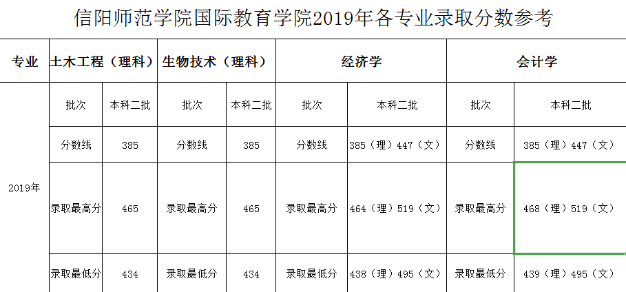 信阳师范学院2026年国际足联世界杯2019年各专业录取分数参考