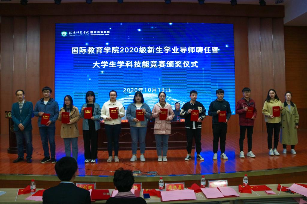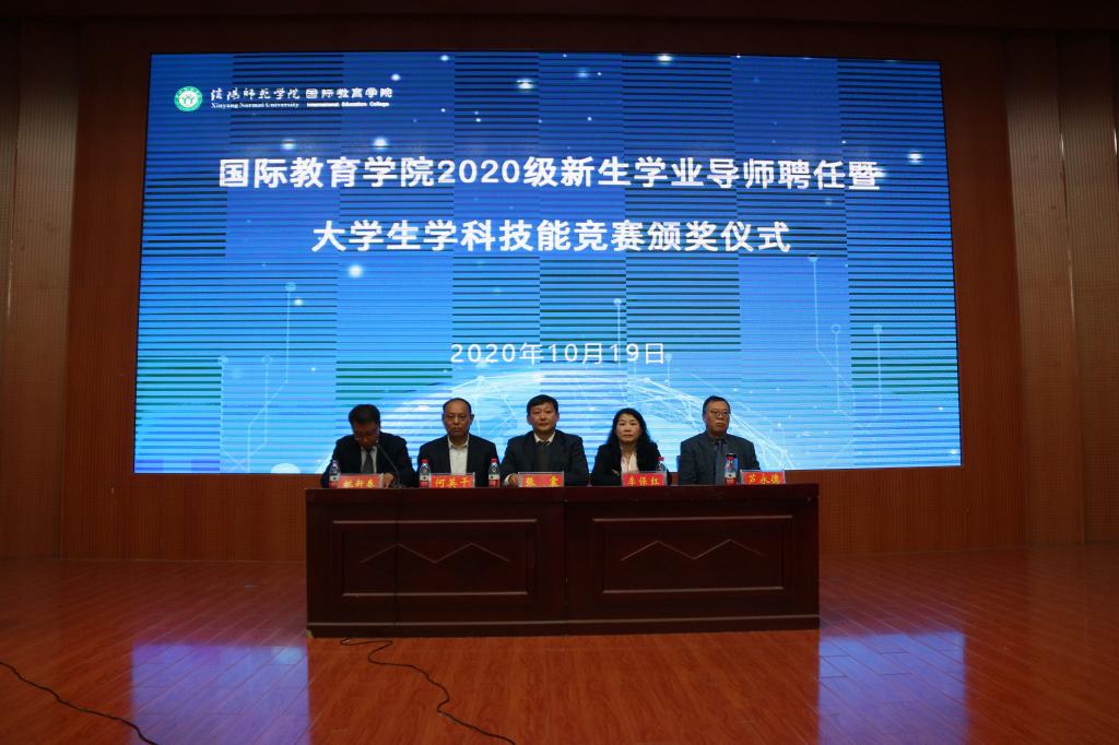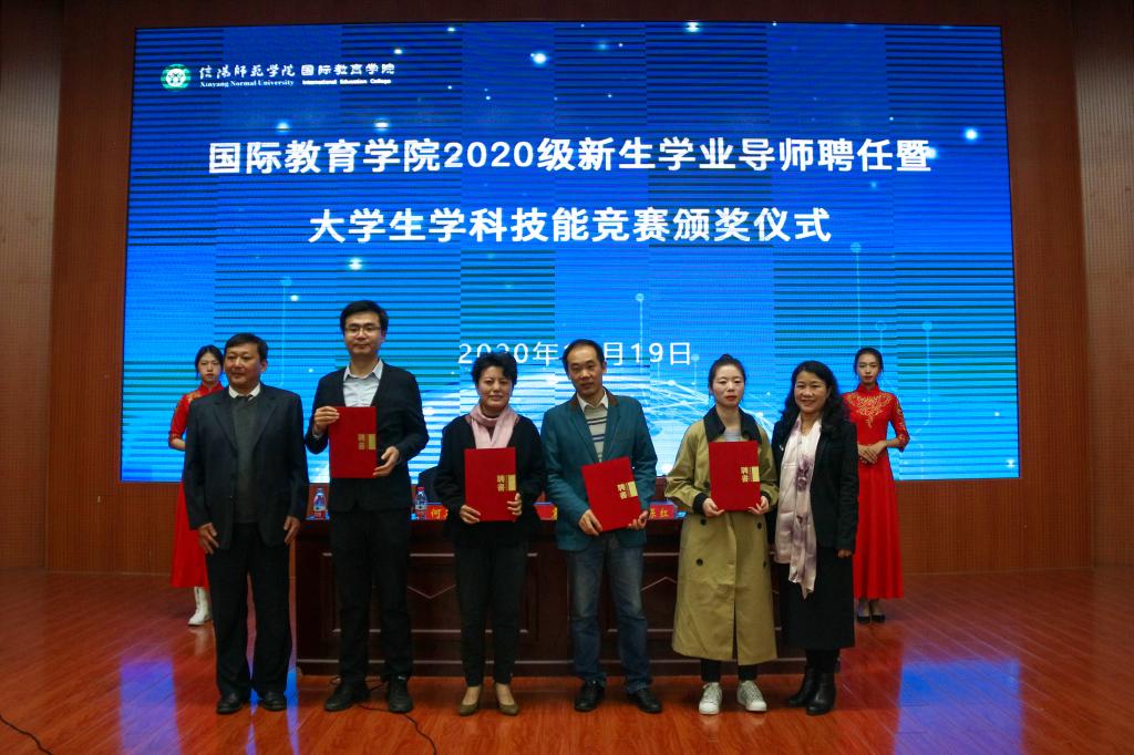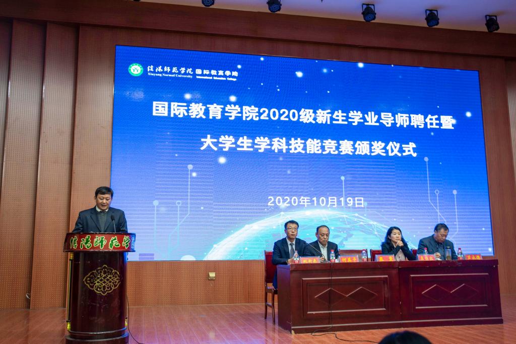 会上,张震重点围绕学业导师的选聘与考核、奖励原则、奖评标准以及奖评体系等内容,解读了《信阳师范学院提升中外合作办学人才培养质量奖励办法(试行)》文件精神;何英干就出国留学的程序和条件、奖励政策等员工家长较为关切的问题,详细介绍了《信阳师范学院在校本科生到中外合作办学外方合作高校出国留学管理办法(暂行)》;芦永德宣读了2020级新生学业导师聘任名单,张震、李保红分别为学业导师颁发了聘书。