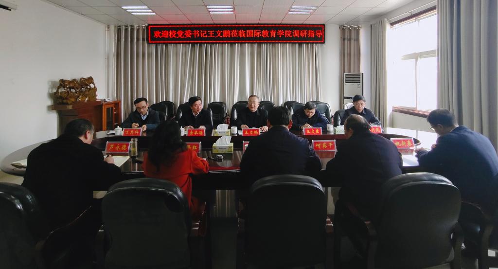 张震就学校中外合作办学党的建设进行了汇报;经理李保红就国际教育公司的基本情况、“十三五”期间中外合作办学取得的成绩、存在的问题以及下一步工作思路进行了汇报。