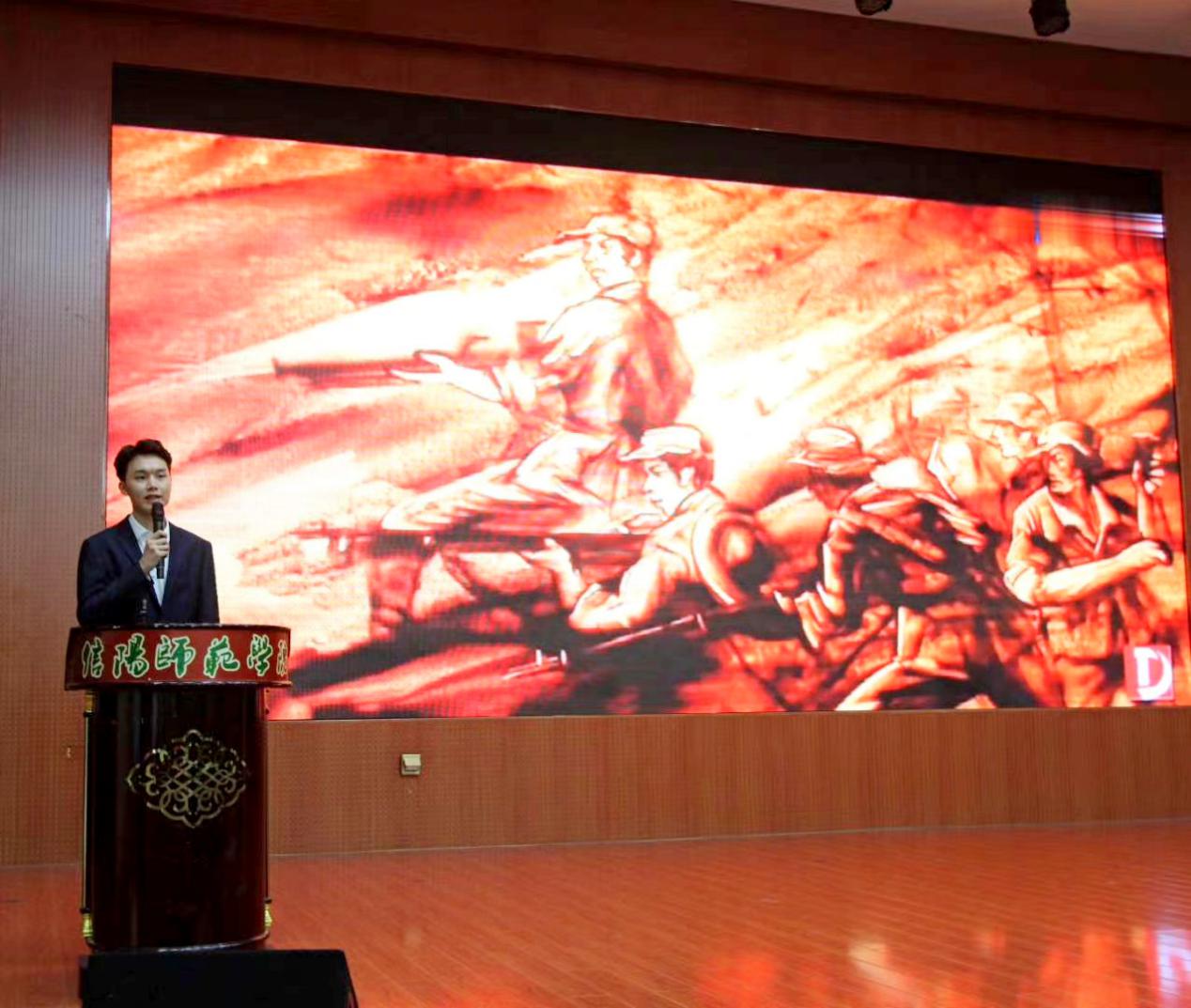 吴浩老师首先讲述了“红军洞的守护者“张爱华老人的故事,以老党员张爱华57年默默奉献、舍身忘我,义务守护“红军洞”的感人事迹,引导20级新生感悟共产党员初心如磐的坚定信念;员工代表贾政澎分享年仅28岁的共产党员查茂德不畏牺牲,与妻子诀别时留下的感人书信,讲述了一段荡气回肠的英雄事迹;