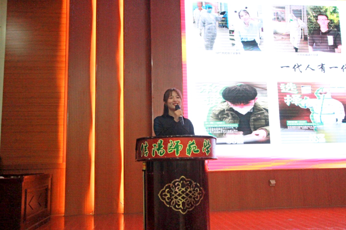 张瀚文讲述了在疫情期间,不顾父母劝阻,不顾风险挑战,毅然骑行300公里返回武汉金银潭医院坚守岗位的热血青年的故事;王倍起以“生命的摆渡人“为题,分享了快递小哥汪勇在疫情期间不顾自身安危,义务接送医护人员往返下班的故事。
