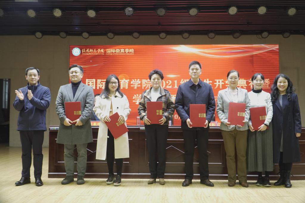 副经理姚光金宣读了相关文件和2021级新生学业导师名单以及2020—2021学年优秀教师名单。公司党委书记李舟、经理李保红为优秀教师颁奖,并向学业导师颁发了聘书。