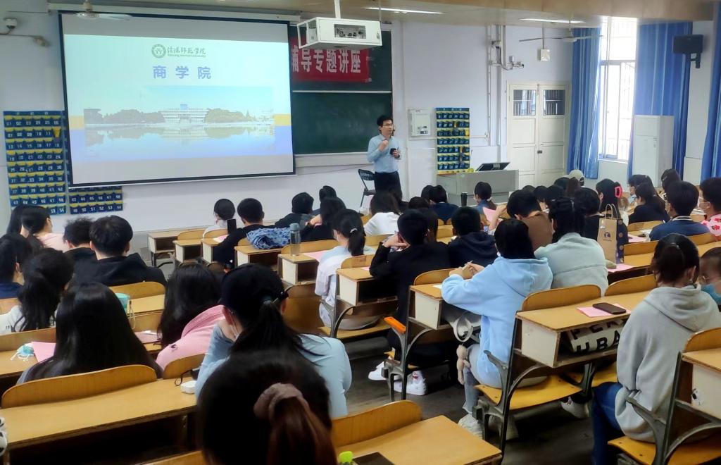 俞彤晖详细介绍了商学院学科专业设置、团队队伍建设、科学研究水平以及硕士公司产品质量、学习环境、奖助体系等具体情况,深入浅出地分析了2022年考研形势,详细讲解了研究生备考策略,他以风趣幽默的语言引导在场员工避免盲从、理性报考,有的放矢、科学备考,耐心解答了同学们在备考过程中存在的疑虑和困惑做,提出了合理有效的对策建议。随后,商学院优秀硕士研究生代表结合个人备考经历,从院校选择、参考书购买、复习规划三个方面分享考研经验。