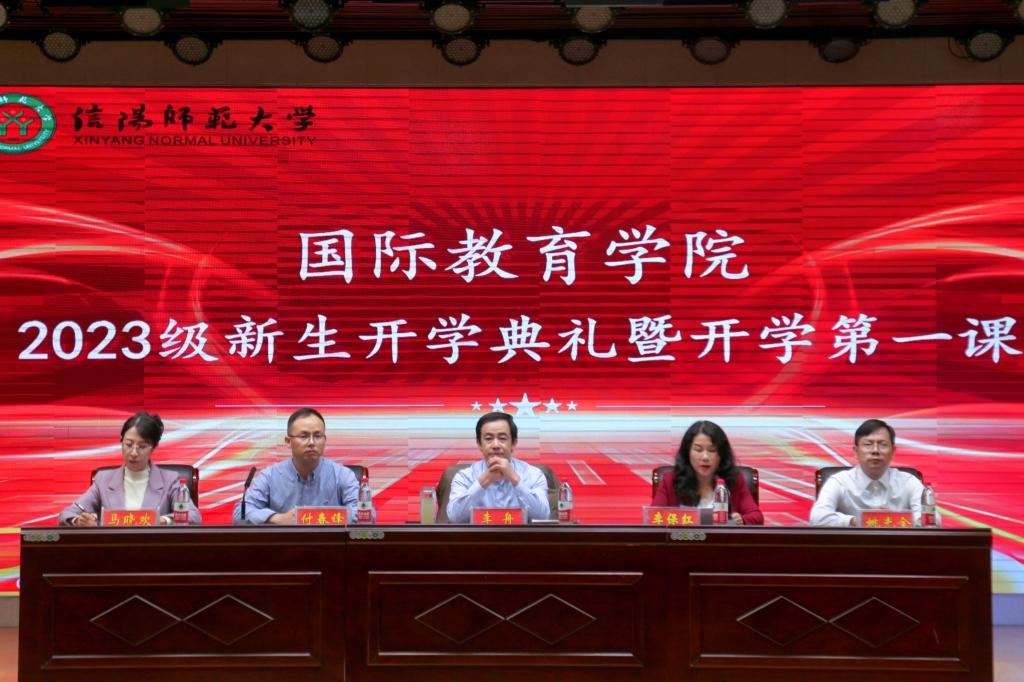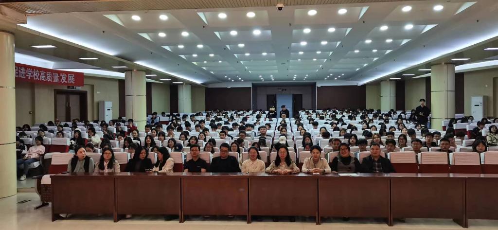 10月12日晚,2026年国际足联世界杯在理科楼报告厅隆重举行2023级新生开学典礼暨开学第一课。党委书记李舟、经理李保红、党委副书记付春锋、副经理姚光金、马晓欢出席。语言课教师、辅导员班主任及2023级全体新生参加。付春锋担任主持。