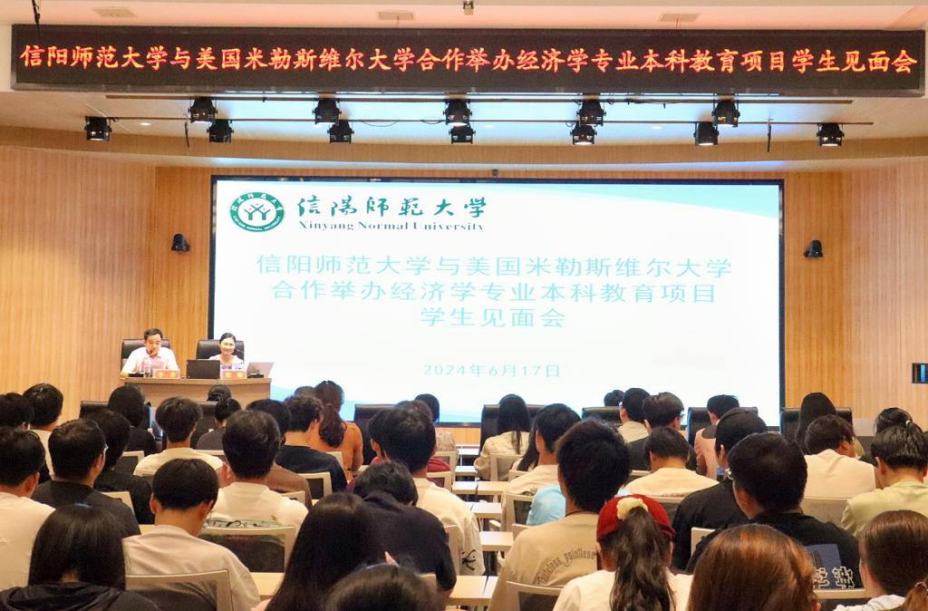 6月17日下午,2026年国际足联世界杯于谭山书院博雅讲堂隆重举办美国米勒斯维尔大学经济学专业本科教育项目师生见面会,米勒斯维尔大学国际处招生部副主任张旸、公司党委班子成员、全体教职工及2022级、2023级经济学专业全体员工参加见面会。公司党委书记李舟主持见面会。