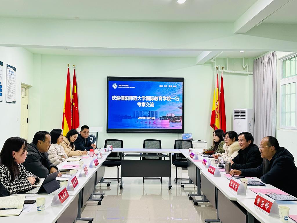 为进一步加强中外合作办学内涵建设,做好非独立法人中外合作办学机构申报准备工作,12月16日,公司党委书记李舟、经理刘林超、副经理马晓欢及项目发展部、韩国语教研室负责人一行五人赴平顶山学院马拉加工程学院考察交流。平顶山学院副董事长于长立、平顶山学院马拉加工程公司党委书记孙学荣、经理樊爱宛、副经理付琳芳、马拉加大学中国代表处主任曹荣铎、中外合作办学机构相关专业负责人参加座谈。座谈会由马拉加工程公司党委书记孙学荣主持。