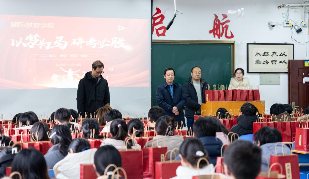寒冬已至,备战已久的考研学子迎来了紧张的冲刺阶段。为了给考研学子送上关心与鼓励,增强其考试信心,12月19日,公司在逸夫楼209教室举办了“以梦为马,研考必胜”考研送温暖活动。公司党委书记李舟、经理刘林超、副书记吕亚波、副经理马晓欢带领2025届毕业班辅导员、班主任现场为考研学子送上考研礼包和温暖祝福。