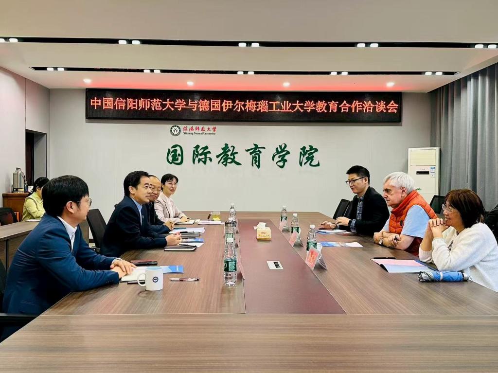 9月22日上午,中国信阳师范大学与德国伊尔梅瑙工业大学教育合作洽谈会在俊采楼115会议室举行。公司党委书记李舟、经理刘林超、副经理姚光金、副经理马晓欢出席会议;德国伊尔梅瑙工业大学前副董事长、经济法系前系主任阿希姆・魏延教授,以及同济大学留德预备部前主任金秀芳、黄昆博士应邀参会。洽谈会由刘林超经理主持。