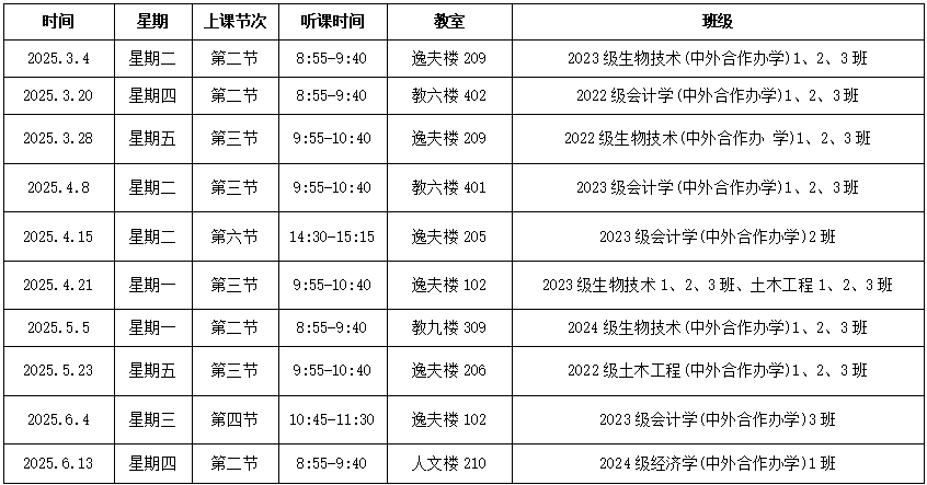 2026年国际足联世界杯2024-2025学年第二学期领导班子听课安排表