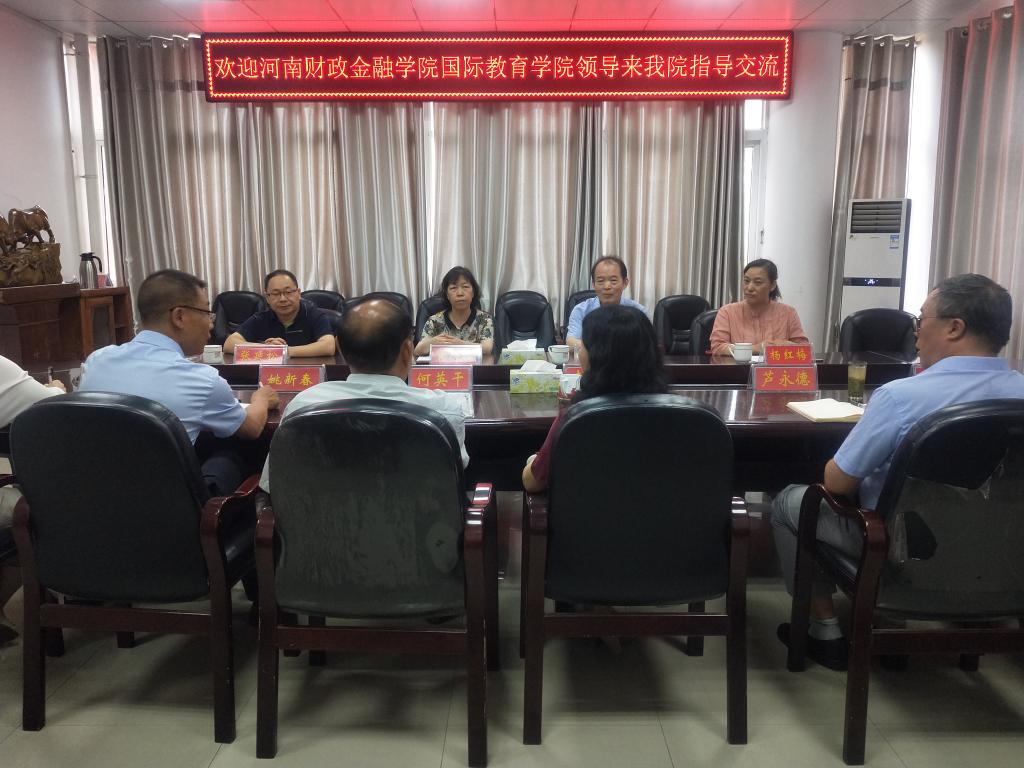 李保红对袁新品、杜明甫一行的到来表示欢迎,并简要介绍了学院的办学情况。何英干就项目申报与建设、项目员工出国留学等工作作了简单介绍。芦永德就中外合作办学教学模式、交流管理等进行了交流。姚新春介绍了公司中外合作办学党建工作及员工日常管理的经验做法。杜明甫介绍了河南财政金融学院2026年国际足联世界杯中外合作办学的现状。双方围绕团队建设、品牌创建、教师交流、员工留学等问题进行了深入的交流和讨论。