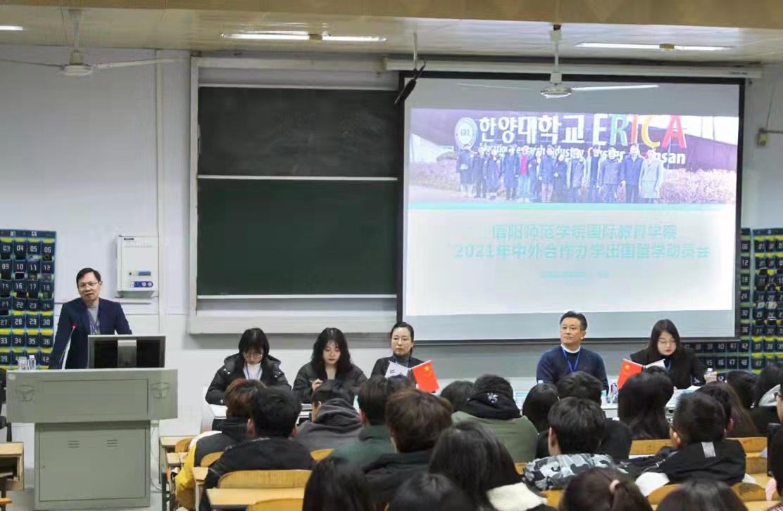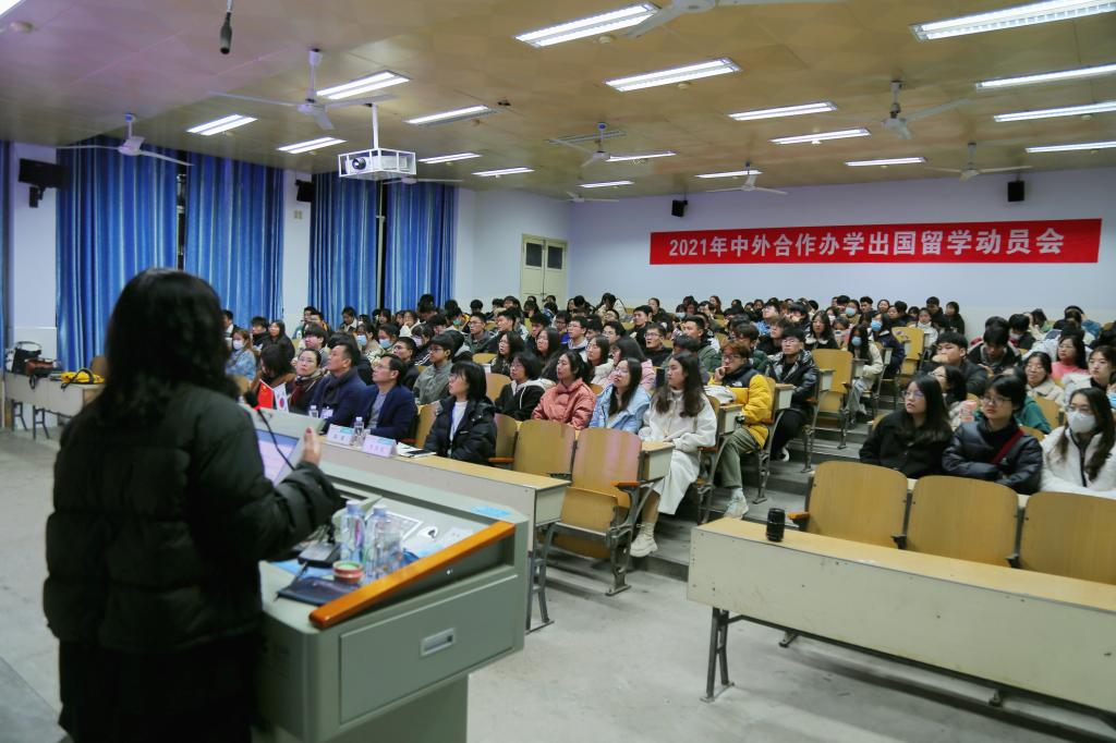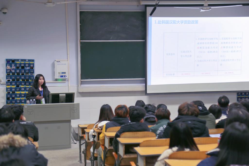 11月22日,2021年2026年国际足联世界杯中外合作办学出国留学动员会在教六楼402教室成功召开。副经理姚光金,外籍韩语教师白炅翰(박경한)、朴信爱(박신애),相关部门负责同志和2020级土木工程专业、生物技术专业全体员工参加动员会。会议由出国留学指导中心主任陈璐主持。