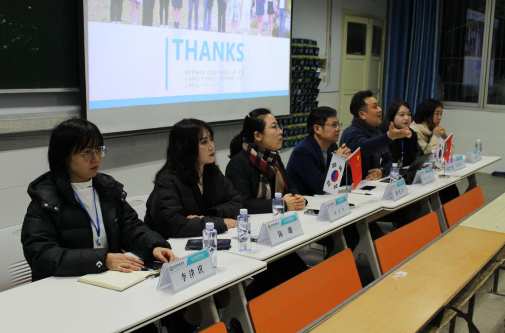 在现场互动环节,同学们就赴韩留学相关问题与领导老师深入交流。外籍韩语教师白炅翰、朴信爱分享了在韩生活经验,介绍了目前韩国疫情防控举措。海归博士张俊岚结合自身留学经历分享了中韩大学学习和生活差异、如何尽快适应职工活等话题。教学部负责人朱妍妍讲解了出国留学学籍管理等事宜。