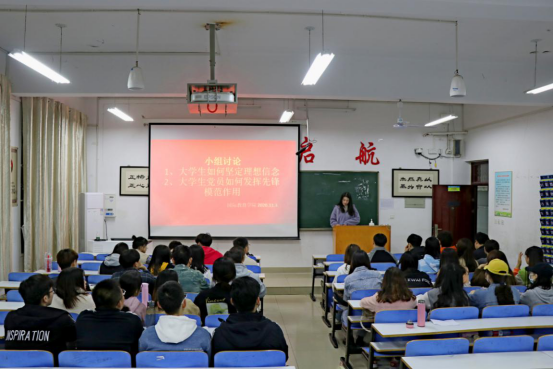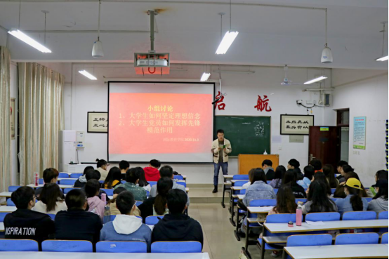 11月3日晚上,信阳师范学院第34期党校公司党校小组组织学员在逸夫楼209教室,围绕“老员工如何坚定理想信念”、“老员工党员如何发挥先锋模范作用”开展小组讨论活动。