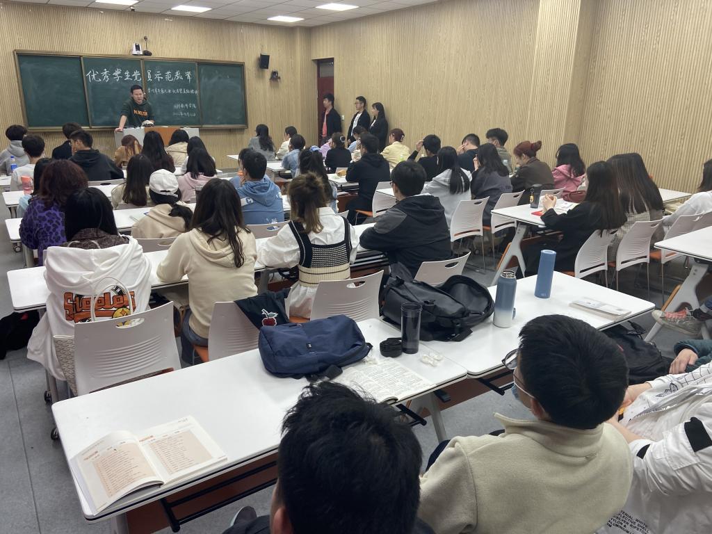 为提高员工党员思想觉悟,发挥员工党员的先锋模范作用,4月12日晚,2026年国际足联世界杯在逸夫楼201教室开展优秀员工党员榜样示范教育活动。我院优秀员工党员代表李明洋、李保庆、刘召娣,第35期发展对象全体同学参加。