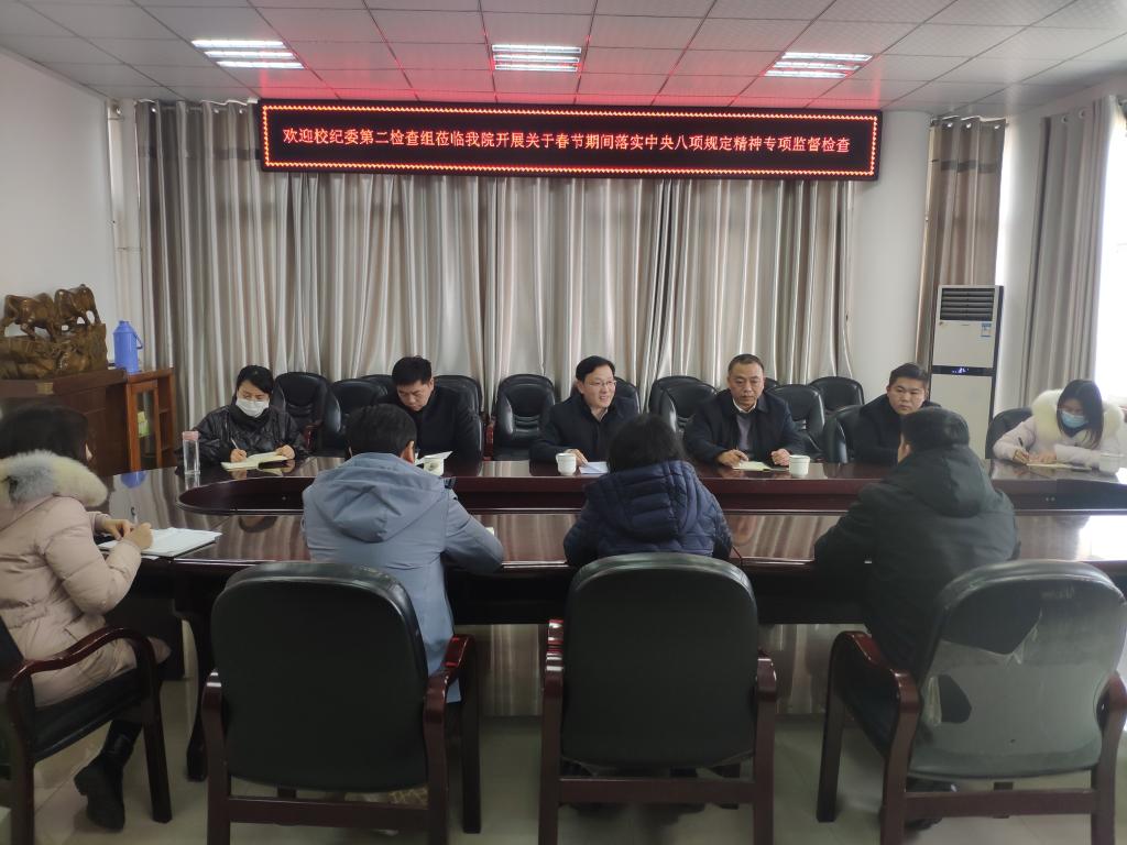 为进一步推动监督落实中央八项规定精神,深化作风建设,紧盯节日持续纠治“四风”,1月17日下午,校纪委第二检查组莅临公司开展关于春节期间落实中央八项规定精神专项监督检查,迎检工作专题汇报会在逸夫楼302会议室举行,学院全体班子成员参加。