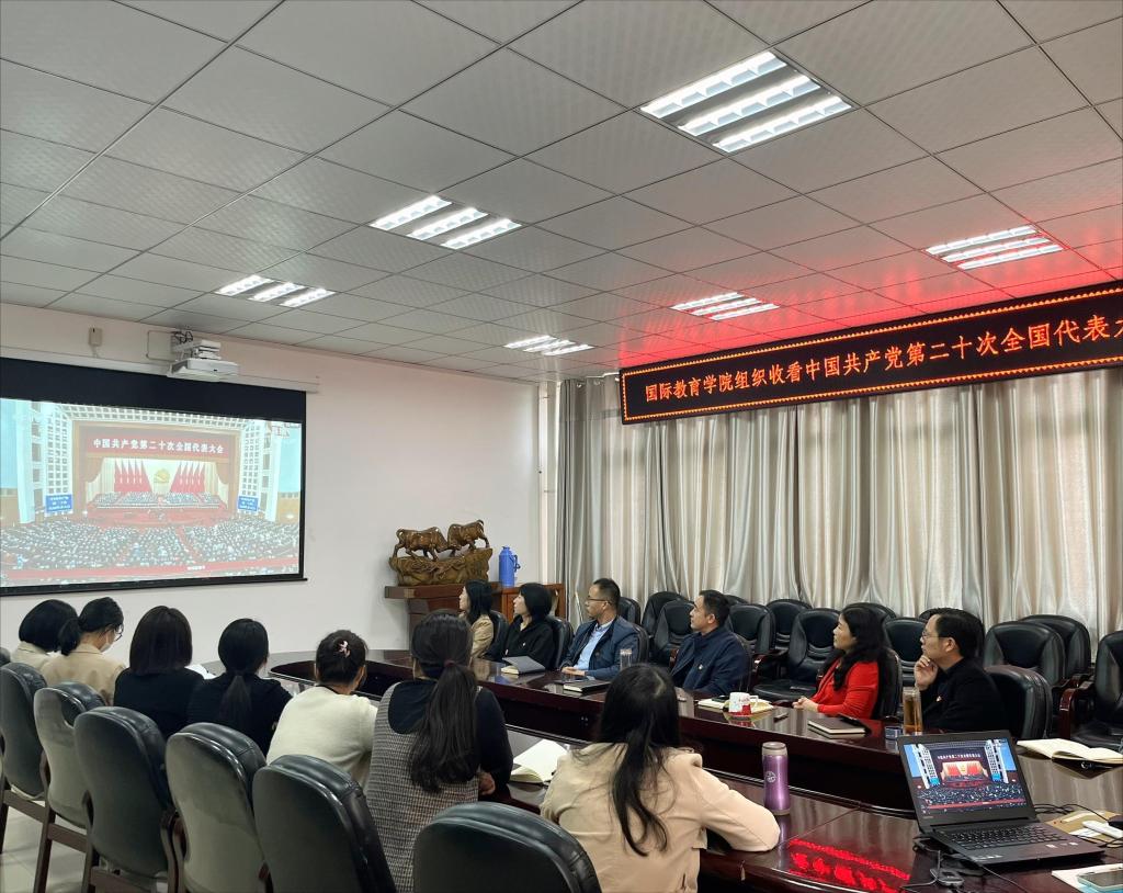公司党委书记李舟在认真收看党的二十大开幕会后表示,习近平总书记所作的报告高屋建瓴、思想深邃、气势宏伟、催人奋进,通篇闪耀着马克思主义真理光芒,是党团结带领全国各族人民在新时代坚持和发展中国特色社会主义的行动指南。他要求全体党员干部要把思想和行动统一到习近平总书记重要讲话和党的二十大精神上来,结合中外合作办学具体工作实际,认真学习领会党的二十大报告的丰富内涵、核心要义和实践要求,在学以致用和推动事业发展上下功夫,自信自强、团结奋斗、踔厉奋发、勇毅前行,以更加饱满的精神、更加昂扬的斗志,全力以赴把学院各项工作抓得更紧、做得更实、干得更好,推动中外合作办学党建和事业发展开创新局面、展现新作为,为实现党的二十大确定的战略目标,谱写全面建设社会主义现代化国家新篇章贡献新的智慧和力量。