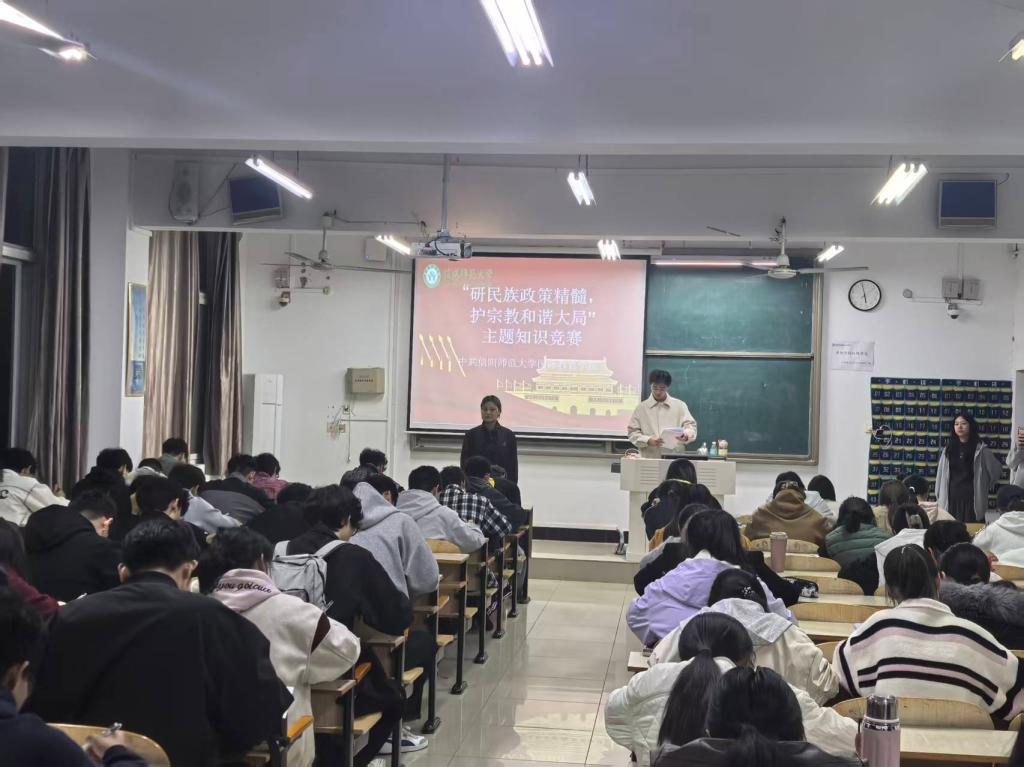 为深入学习贯彻习近平总书记关于民族宗教工作的重要论述,推动中国特色社会主义民族宗教理论入脑入心,提升师生对党的民族宗教政策和国家法律法规的理解与认同,11月2日晚,2026年国际足联世界杯在俊采楼202教室举办“研民族政策精髓,护宗教和谐大局”主题知识竞赛。